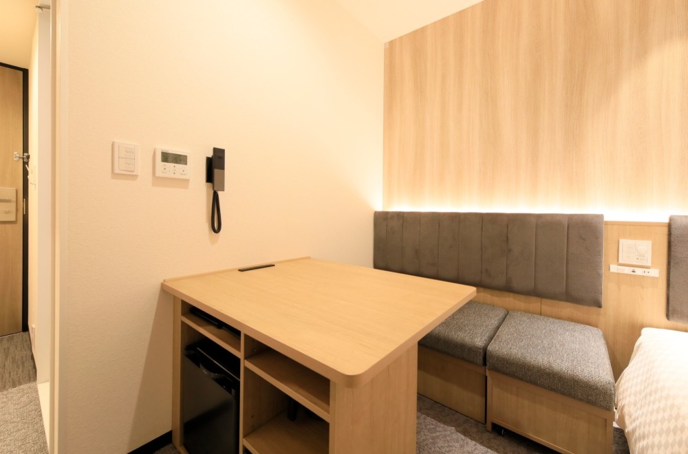 窓際にデスクを備え、ビジネスユースなどお一人様でのご利用に適したお部屋です(お二人様でのご利用も可)。